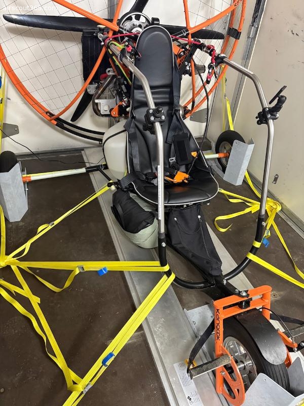 Das Trike hat einen sehr bequemen Schalensitz der auch für größere Personen geeignet ist. Das Trike kann leicht zum Zweisitzer oder auch auf hängende Gurtzeuge umgebaut werden. Ebenso wäre ein Motorwechsel denkbar.Es lässt es sich für den Transport sehr schmal zerlegen. Ich habe es aber immer komplett aufgebaut im Anhänger gelagert und transportiert. Es stand immer in der Garage, trocken und sauber.