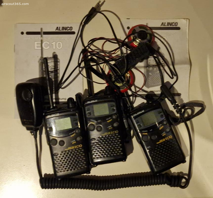 ALINCO EC10 Handfunkgeräte3 Stück inkl. Handsprechtaste, Helmeinbauset und Bedienungsanleitung.